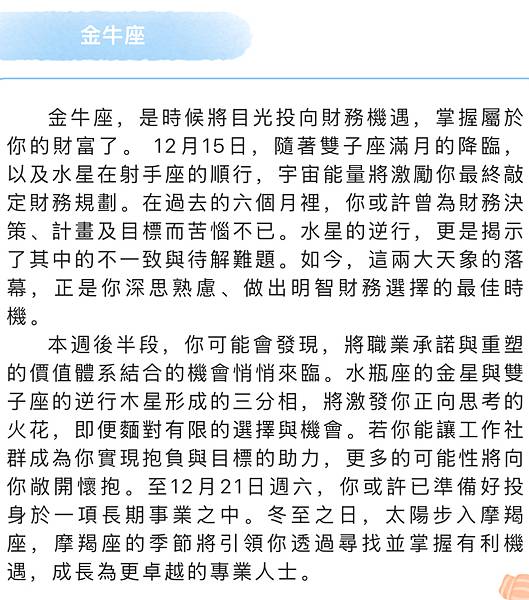 - 2024: 【吉特】一週星座運勢12.16-12.22