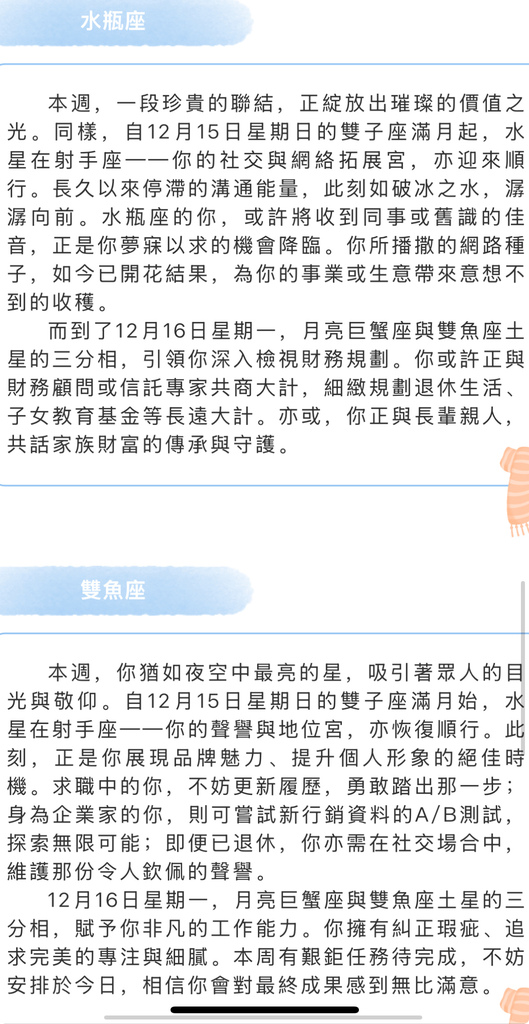 - 2024: 【靜電魚】本週星座運勢12.23-12.29